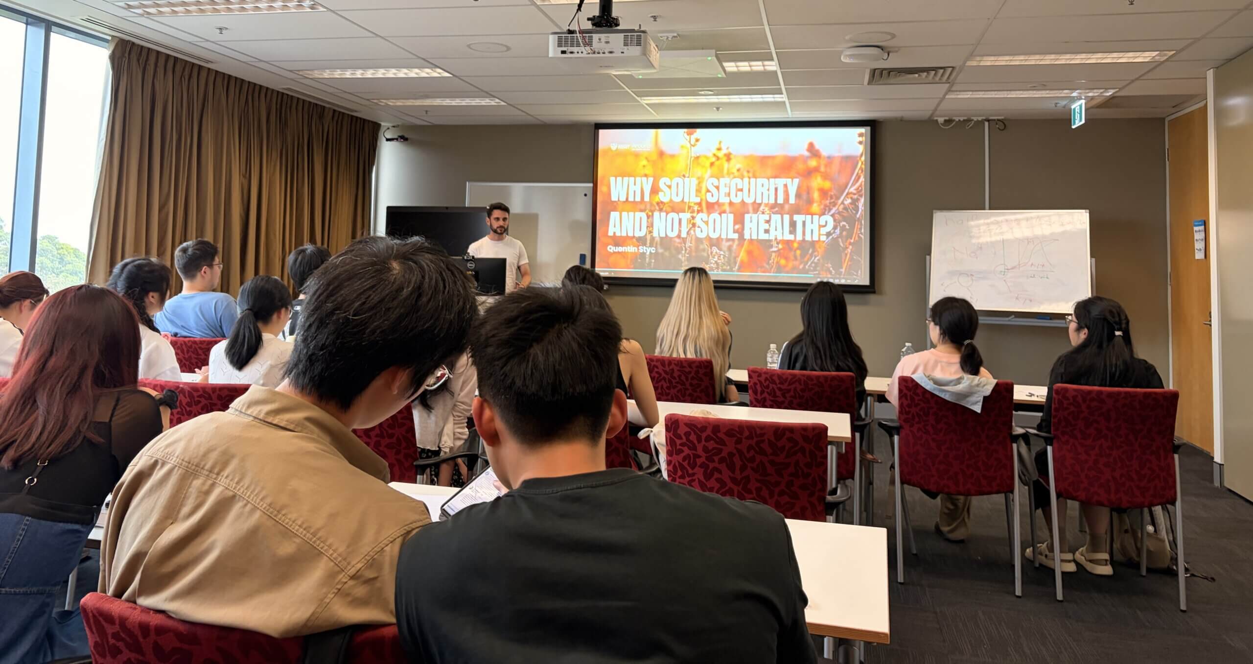 The workshop also demonstrated the types of evidence that Soil Security draws upon—field observations, lab analyses, spatial data, and decision frameworks—and how these can be integrated without losing transparency. Students engaged with examples of how Soil Security can be applied to support land managers, industry groups, governments, and communities. The takeaway was that practical application does not mean simplifying reality; it means structuring complexity so that choices become clearer.